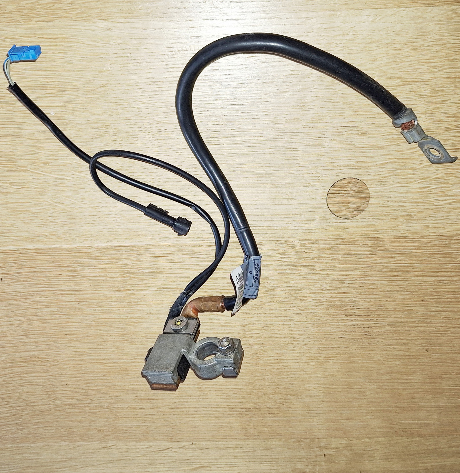 Déconnexion du câble de son plot de masse de carroserie, c'est pas d'un accès très évident. Boulonnerie en M8.