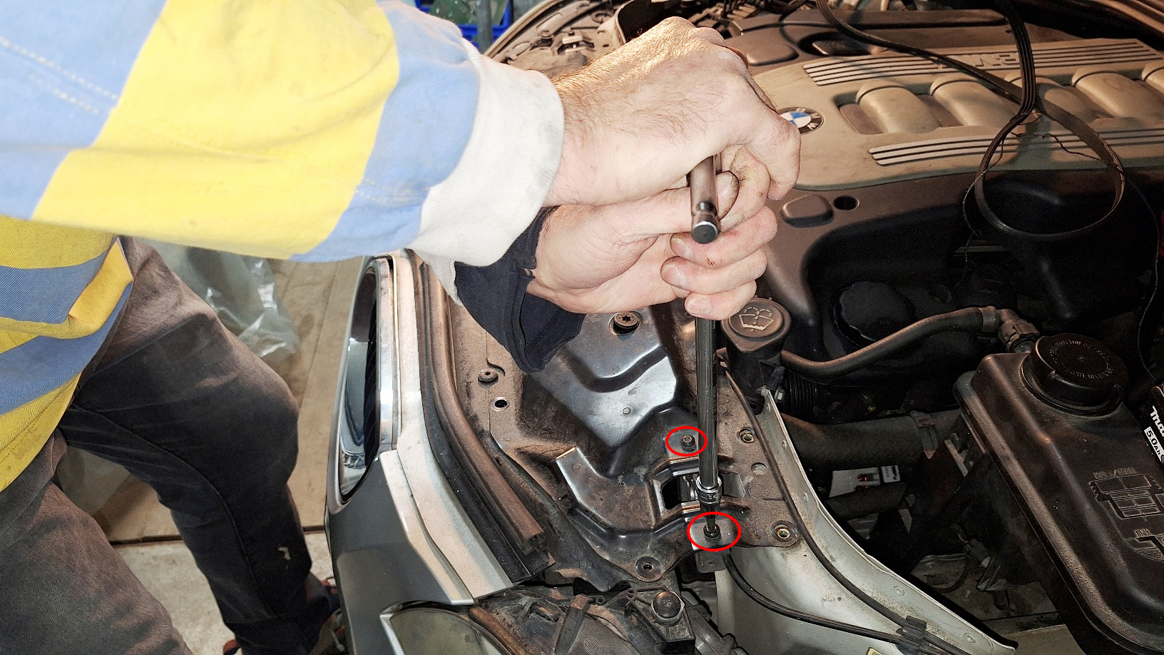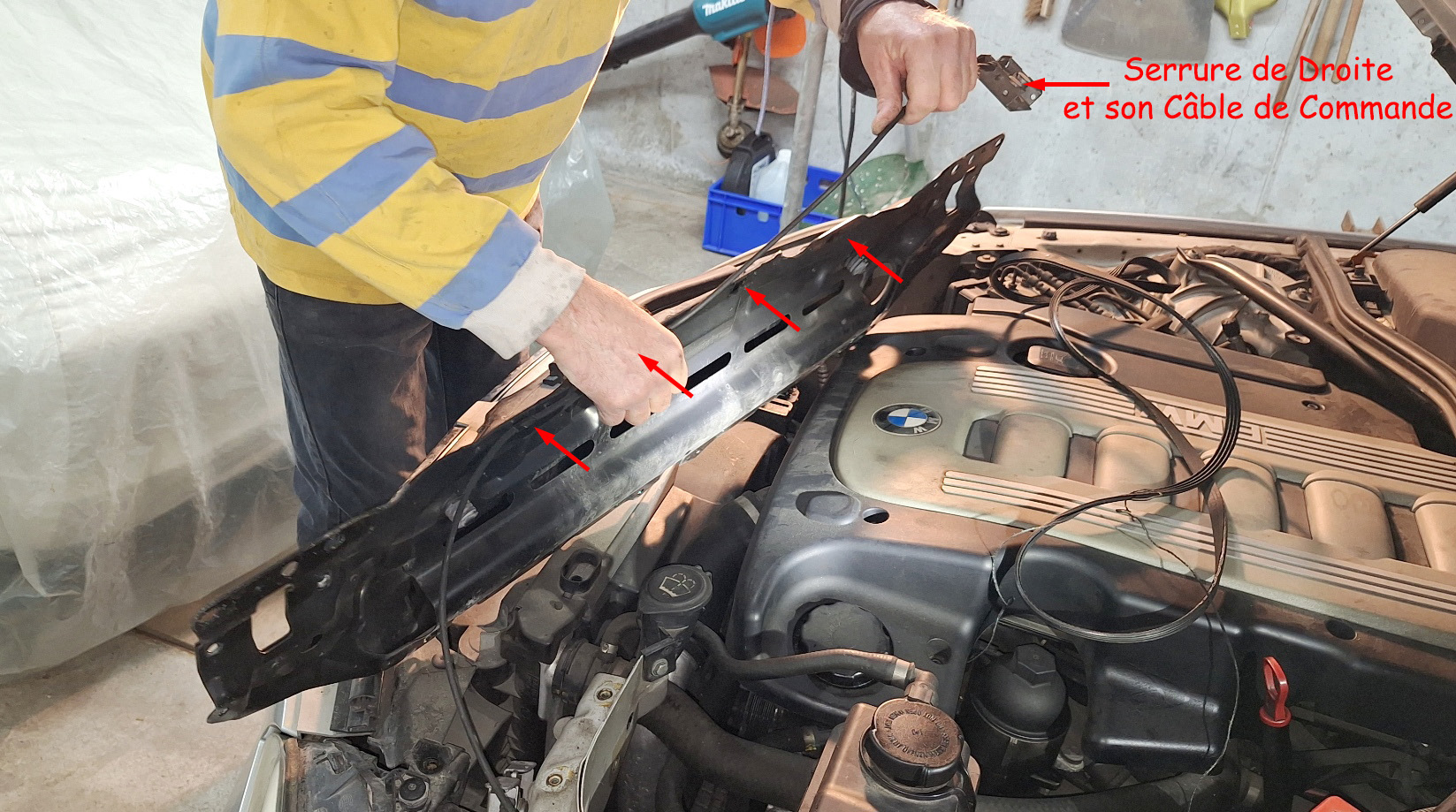 <= On dépose aussi les deux serrures de libération du capot moteur (droite & gauche).
