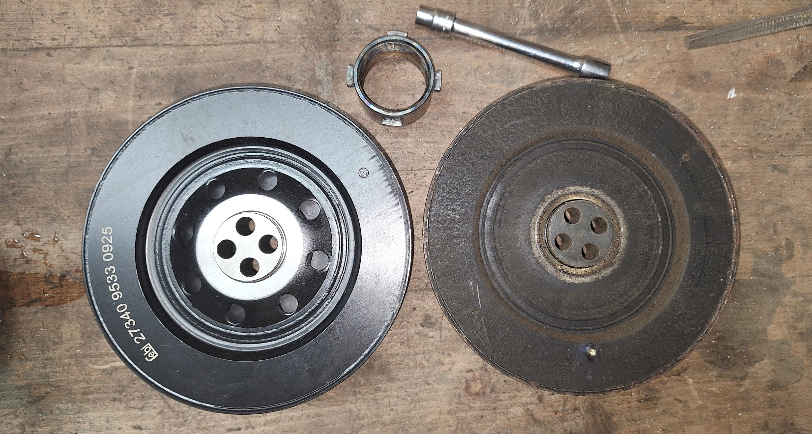 Je n'ai pas trouvé d'outil de blocage pour la nouvelle poulie Damper. Donc fabrication maison.