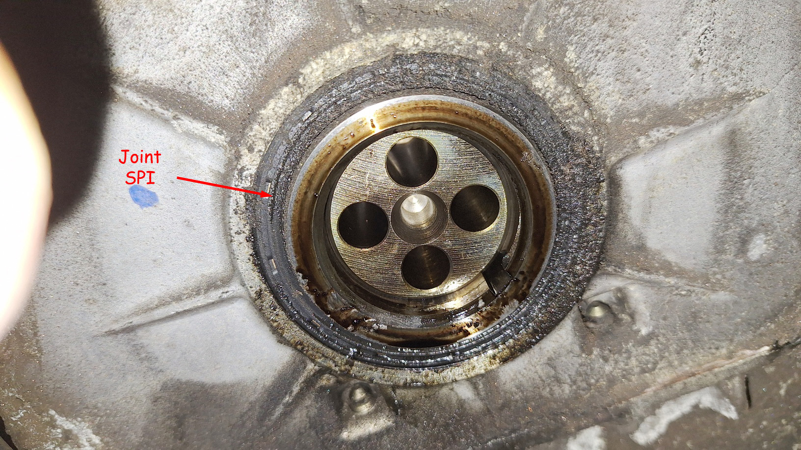 <= Avant montage de la poulie Damper neuve, on nettoie la portée du joint SPI. |